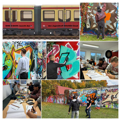 Im Jugendtreff HOUSE6 Cloud in Eilenburg hat am gestrigen Tag ein spannendes Graffiti-Projekt begonnen. Gemeinsam mit einem professionellen Graffitikünstler und mehreren Jugendlichen wurde der Startschuss für die künstlerische Gestaltung der langen Flurwand des Treffs gegeben. Ziel ist es, im Verlauf des Projekts eine farbenfrohe Berliner S-Bahn an die Wand zu bringen – als kreatives Gemeinschaftswerk, das den Treff noch lebendiger macht. Beim ersten Projekttag standen neben der gemeinsamen Planung auch praktische Übungen und Grundlagen des Graffitis im Mittelpunkt. Die Teilnehmenden erhielten Einblicke in Techniken, Stilmittel und Tricks des Sprayens, setzten erste Skizzen (Sketch Art) um und lernten Wissenswertes über die Geschichte und den rechtlichen Rahmen dieser Kunstform.